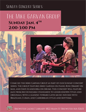 The group features Mike Garvan on piano, Peter Murray on saxophone, Scott Sheehan on electric bass, and Chris Poudrier on drums and percussion. This concert will feature jazz from recognizable standards to lesser-known titles and originals, with a leaning toward Latin music infused with Brazilian, Cuban, and Caribbean styles and rhythms