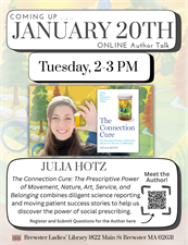 Be sure to jump start your new year with us as we chat virtually with journalist and author Julia Hotz about her book The Connection Cure: The Prescriptive Power of Movement, Nature, Art, Service, and Belonging.